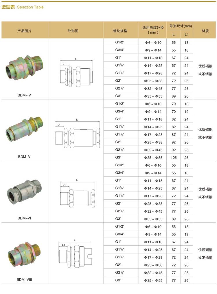 作为防爆电气设备的一种配套附件,用于夹紧各种铠装或非铠装电缆。
